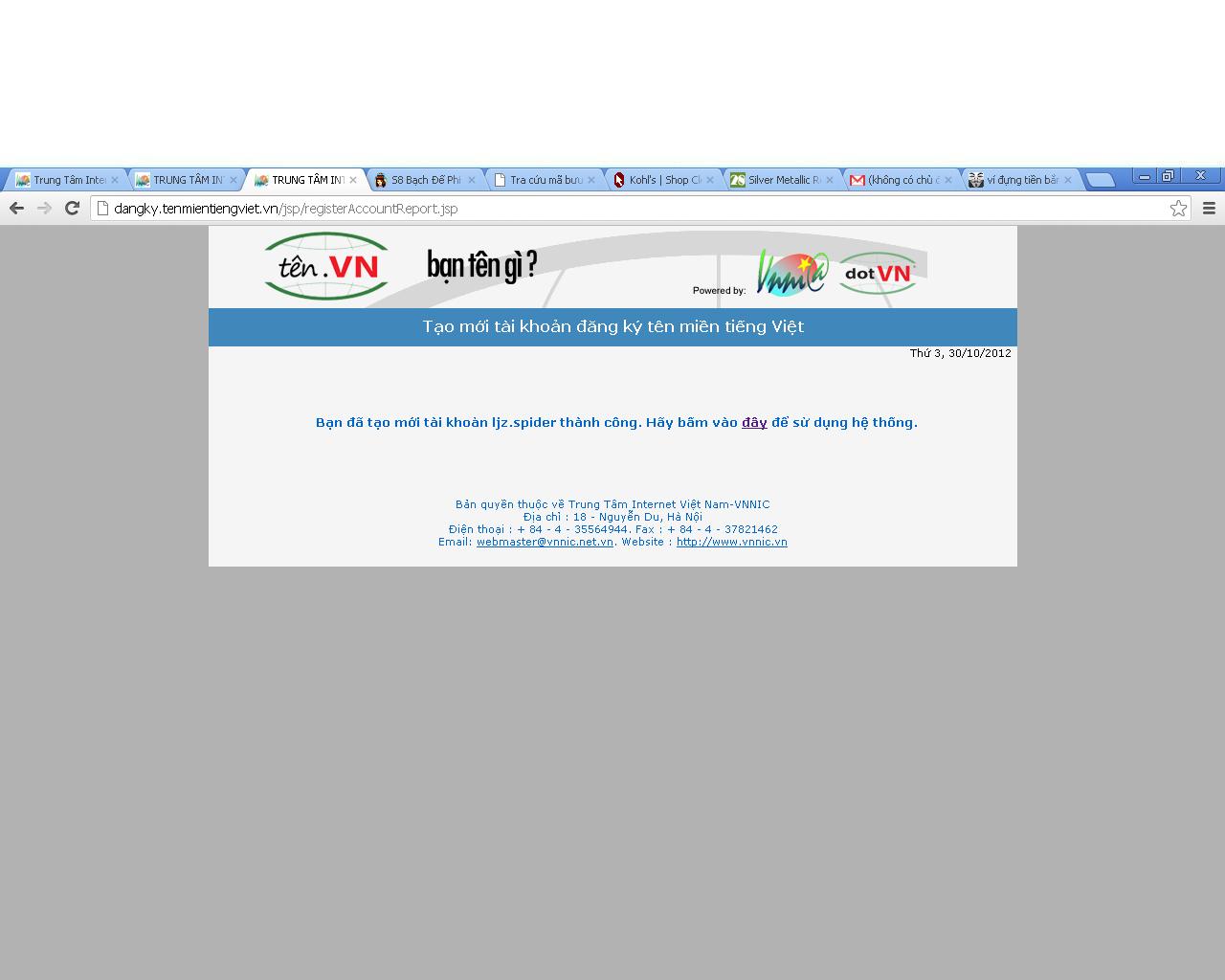 Ví dụ tên miền của mình reg là “nhócljz.vn” sau đó bấm nút tra cứu, nếu báo chưa ai đăng ký là mình có thể reg đc.Bước 1 vào http://vnnic.vn/tenmientiengviet/tra cứu xem tên miền có sẵng chưa nhé